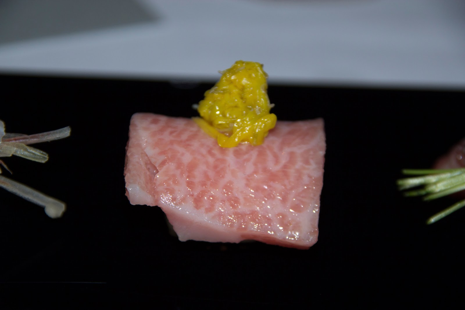 In Japan we had the pleasure of eating at four of the best sushi restaurants in the country. Unfortunately, we didn't make it to all the ones I had hoped, but Sushi Sawada, Sushi Mizutani, Sushi Yashitake, and Kyubei - Ginza isn't a bad hit list. While stuffing ourselves full of extravagant sushi, my wife declared she loved Otoro. Here are two of her favorite bites.